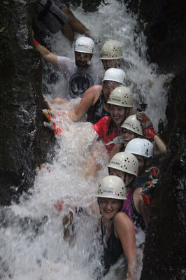 Für alle die Canyoning nicht kennen: Da geht/wandert man durch einen Fluss/Schlucht und muss sich an unterschiedlichen Wasserfällen abseilen oder auch runter springen.