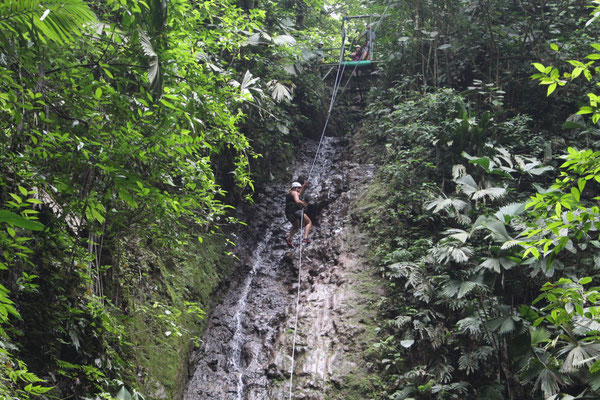 Das war richtig krass. Unsere Guedes meinten wir sollten einfach zu viel nachdenken, sie machen das schon für uns :D Das war wirklich sehr beruhigen :D Das erste Abseilen waren nur 3 Meter also erst mal zum rein kommen, das 2. war dann schon extremer, mit 20 Meter Abseilen und am Schluss noch mal 10 Meter wie freier Fall. Der 3. war mehr wieder wie der erst und der Letzt war dann der Schwerste, mit 40 Meter Abseilen und 50 Meter "freier Fall" :D